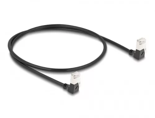 Delock RJ45 hálózati kábel Cat.6A S/FTP vékony 90 fokban lefelé / lefelé hajló 0,5 m fekete