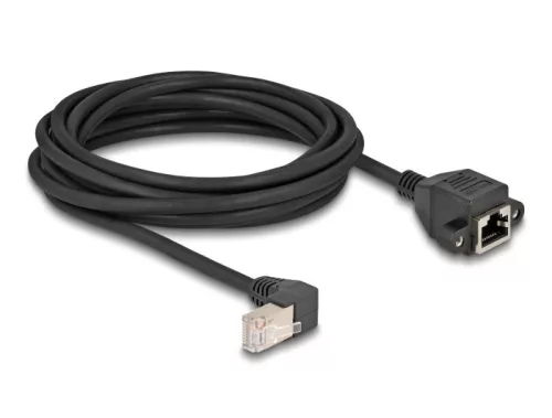Delock Hálózat bővítő kábel S/FTP RJ45 apa 90 hajlított - RJ45 beépített anya Cat.6A 5 m fekete (80314)