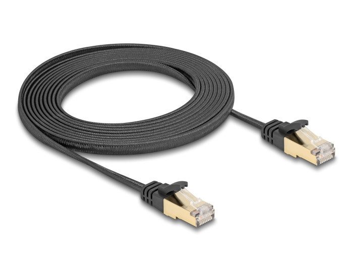 Delock RJ45 lapos hálózati kábel fonott borítással Cat.6A U/FTP apa - apa 3 m fekete (80327)