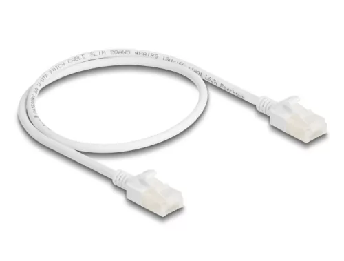 Delock RJ45 hálózati kábel Cat.6A apa apa robosztus csatlakozóval ipari felhasználásra U/UTP Slim 0,5 m, fehér (80358)