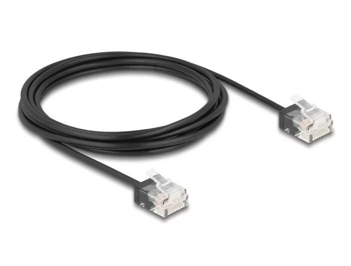 A Delock hálózati kábellel különböző hálózati eszközök kapcsolhatók össze pl. egy hálózati vezérlő egy switch-hez vagy egy patch panelhez. Vékony patch kábel A vékony patch kábelek jellemezhetők alacsony kábel átmérőjükkel és a hálózati kabinetben általuk megvalósítható flexibilis és helytakarékos összeköttetésekkel. Ultra vékony kialakítás Az ultra vékony patch kábelek magas flexibilitást biztosítanak, könnyebbek és kisebbek a standard patch kábelekhez képest. Műszaki adatok Csatlakozó: 1 x RJ45 dugó 1 x RJ45 dugó Cat.6 specifikáció Akár 1 Gbps sebességű adatátvitel Sávszélesség: 250 MHz UTP Ultra vékony Kábel vastagsága: 32 AWG Arany bevonatú érintkezők: 50 u Kábelátmérő: kb. 2,6 mm Kábelborítás anyaga: PVC Szín: fekete Hosszúság: kb. 3 m Rendszerkövetelmények Egy szabad RJ45-csatlakozóhüvely A csomag tartalma RJ45 kábel Csomag Zárható műanyag tasak Gyártó: Delock