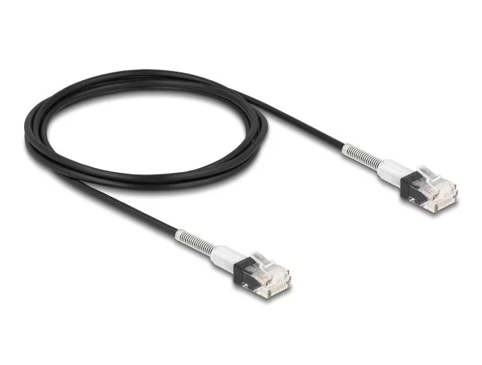 A Delock hálózati kábellel különböző hálózati eszközök kapcsolhatók össze pl. egy hálózati vezérlő egy switch-hez vagy egy patch panelhez. Vékony patch kábel A vékony patch kábelek jellemezhetők alacsony kábel átmérőjükkel és a hálózati kabinetben általuk megvalósítható flexibilis és helytakarékos összeköttetésekkel. További védelem a görbítés védelemmel A dupla hajlítás feszültségmentesítő hatású, így a kábel biztosítva és védve van megerőltető hajlítás negatív hatásaitól. Műszaki adatok Csatlakozó: 1 x RJ45 dugó 1 x RJ45 dugó Cat.6A specifikáció Akár 10 Gbps sebességű adatátvitel Sávszélesség: 500 MHz Akár 2 000 alkalommal hajlítható UTP Vékony A dupla hajlítás védelem feszültségmentesít Kábel vastagsága: 30 AWG Arany bevonatú érintkezők: 50 u Kábelátmérő: kb. 3,0 mm Kábelborítás anyaga: LSZH (halogénmentes) Szín: fekete Hosszúság: kb. 2 m Rendszerkövetelmények Egy szabad RJ45-csatlakozóhüvely A csomag tartalma RJ45 kábel Csomag Zárható műanyag tasak Gyártó: Delock