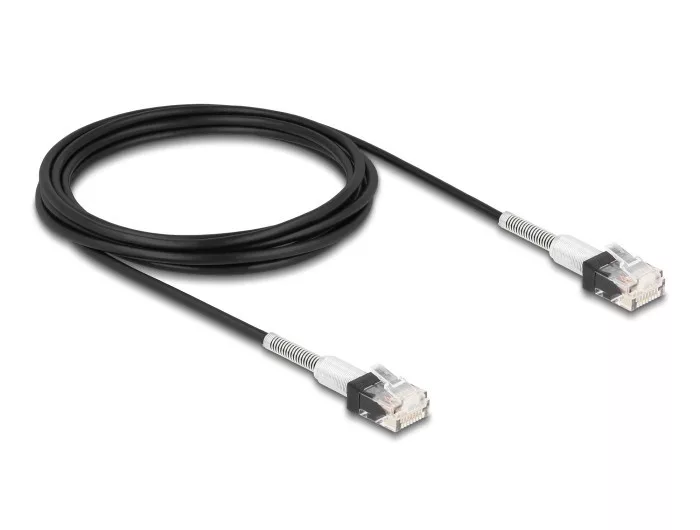 A Delock hálózati kábellel különböző hálózati eszközök kapcsolhatók össze pl. egy hálózati vezérlő egy switch-hez vagy egy patch panelhez. Vékony patch kábel A vékony patch kábelek jellemezhetők alacsony kábel átmérőjükkel és a hálózati kabinetben általuk megvalósítható flexibilis és helytakarékos összeköttetésekkel. További védelem a görbítés védelemmel A dupla hajlítás feszültségmentesítő hatású, így a kábel biztosítva és védve van megerőltető hajlítás negatív hatásaitól. Műszaki adatok Csatlakozó: 1 x RJ45 dugó 1 x RJ45 dugó Cat.6A specifikáció Akár 10 Gbps sebességű adatátvitel Sávszélesség: 500 MHz Akár 2 000 alkalommal hajlítható UTP Vékony A dupla hajlítás védelem feszültségmentesít Kábel vastagsága: 30 AWG Arany bevonatú érintkezők: 50 u Kábelátmérő: kb. 3,0 mm Kábelborítás anyaga: LSZH (halogénmentes) Szín: fekete Hosszúság: kb. 3 m Rendszerkövetelmények Egy szabad RJ45-csatlakozóhüvely A csomag tartalma RJ45 kábel Csomag Zárható műanyag tasak Gyártó: Delock