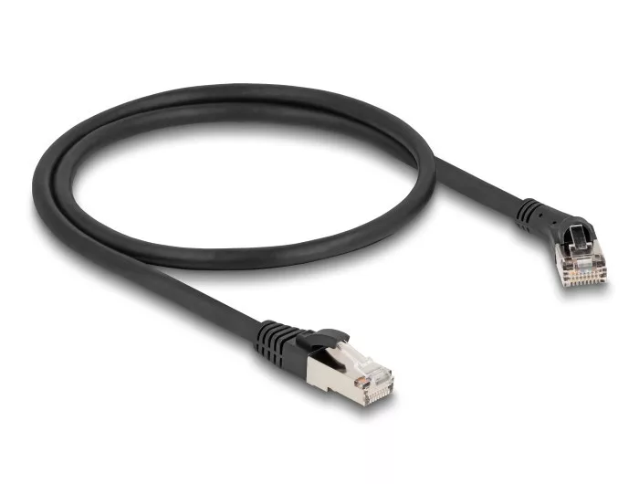 Ez a Delock hálózati kábel használható különböző eszközök összekötésére és alkalmas 40GBASE-T Ethernet applikációhoz egy 2 GHz frekvenciával és akár 40 Gb/s adatátviteli sebességgel. Hajlított csatlakozó fejjel A szögletes csatlakozó lehetővé teszi a helytakarékos telepítést szűk helyeken a készülékek vagy a hálózati szekrények mögött. Műszaki adatok Csatlakozó: 1 x RJ45 apa 45 -ban jobbra hajlított 1 x RJ45 dugó egyenes 1:1 csatlakoztatás Cat.8.1 specifikáció Akár 40 Gbps sebességű adatátvitel Sávszélesség: 2000 MHz Árnyékolt (S/FTP) Kábel vastagsága: 28 AWG Kábelátmérő: kb. 6,0 mm Kábelborítás anyaga: LSZH (halogénmentes) Működési hőmérséklet: -20 C ~ 60 C Szín: fekete Hosszúság: kb. 0,5 m A csomag tartalma Patch kábel Csomag Zárható műanyag tasak Gyártó: Delock