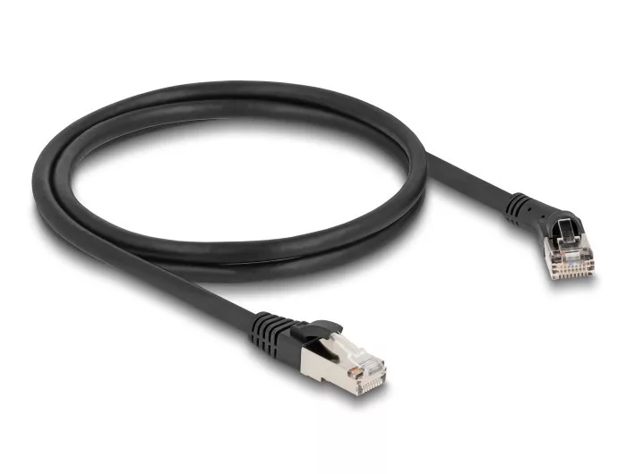 Delock RJ45 hálózati kábel Cat.8.1 S/FTP 45 -ben jobbra hajlított apa egyenes apa, akár 40 Gbps, 1 m, fekete (80637)