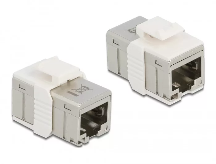 Ez a Delock RJ45-adapter hálózati kábelek kibővítésére használható. Lehetséges a kapcsolót beépíteni egy Keystone keretbe használva a mellékelt vázat. Hihetetlenül kompakt kialakításának köszönhetően, használható például 48 RJ45 Keystone modulok helytakarékos beépítésére csupán 1U-n. Műszaki adatok Csatlakozó: 1 x RJ45 hüvely > 1 x RJ45 hüvely 1:1 csatlakoztatás Kompatibilis az ISO/IEC 11801 2.2-es kiadás, az EN 50173-1:2011 és az EN 60603-7-51, illetve az ANSI/TIA 568-C.2 Cat.6A-követelményeivel Támogatja a PoE / PoE+ használatát Árnyékolt (STP) Arany bevonatú érintkezők Anyaga: cink öntvény Méretek (HxSzxM): kb. 27,0 x 14,5 x 14,0 mm Rendszerkövetelmények Egy szabad RJ45-csatlakozódugó A csomag tartalma RJ45-csatoló Keystone keret Csomag Zárható műanyag tasak Gyártó: Delock