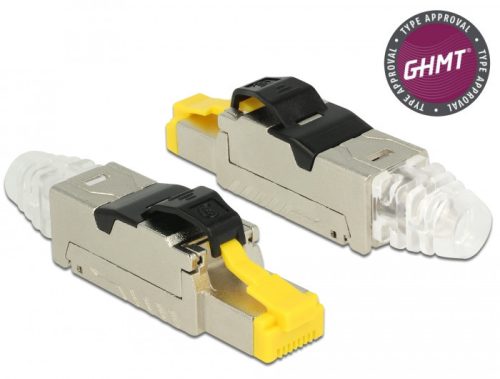 A Delock RJ45 dugaszoló szerelvény hálózati kábelek csatlakoztatására használható. A dugasz felszerelése különböző kábeltípusokra szerszám nélkül és időtakarékosan megvalósítható. Műszaki adatok Csatlakozó: 1 x RJ45 dugó Kábelelvezetés: 180 Árnyékolt (STP) Cat.8 specifikáció GHMT: 2 Connector Channel Link ISO/IEC TR 11801-9901 Ed.1.0 (2014-08) Anyaga: cink öntvény TIA-568A/B bekötés Tömör és sodrott huzalhoz max. 0,644 mm-ig (22 - 24 AWG) A kábel átmérője 6,0 - 8,5 mm Méretek (H x Sz x M): kb. 63,1 x 18,4 x 13,8 mm A csomag tartalma RJ45 dugasz Kábelkezelő Porvédő Csomag Poly bag Gyártó: Delock Szélesség cm: 8 Hosszúság cm: 13 Magasság cm: 1