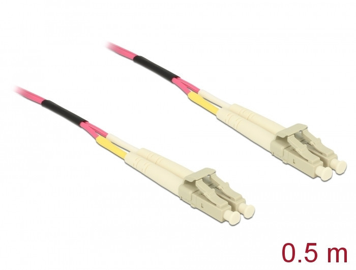 Ez a Delock száloptikai kábel lehetővé teszi, hogy különböző hálózati eszközöket (pl. kapcsolót) csatlakoztasson egy mádiaátalakítóhoz. Műszaki adatok Csatlakozó: 1 x LC duplex > 1 x LC duplex Többszörös OM4-kábel Szál: 50/125 m Kerámiából készült kábelátvezető porvédővel Beillesztési veszteség < 0,1 dB Kábelátmérő: kb. 1,8 mm LS0H (halogénmentes) Szín: ibolya Kábelhossz: kb. 0,5 m Rendszerkövetelmények Egy szabad LC duplex port A csomag tartalma Száloptikai kábel Csomag Zárható műanyag tasak Gyártó: Delock