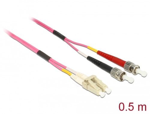 Ez a Delock száloptikai kábel lehetővé teszi, hogy különböző hálózati eszközöket (pl. kapcsolót) csatlakoztasson egy mádiaátalakítóhoz. Műszaki adatok Csatlakozó: 1 x LC duplex > 1 x ST duplex Többszörös OM4-kábel Szál: 50/125 m Kerámiából készült kábelátvezető porvédővel Beillesztési veszteség < 0,1 dB Kábelátmérő: kb. 1,8 mm LS0H (halogénmentes) Szín: ibolya Kábelhossz: kb. 0,5 m Rendszerkövetelmények Egy szabad LC duplex port A csomag tartalma Száloptikai kábel Csomag Zárható műanyag tasak Gyártó: Delock