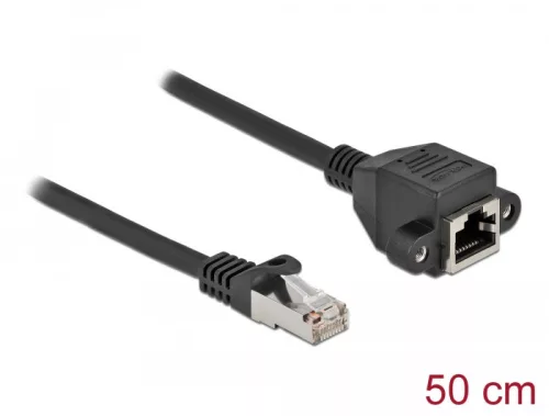 Delock Hálózat bővítő kábel S/FTP RJ45 apa - RJ45 anya Cat.6A, 50 cm hosszú, fekete (86999)