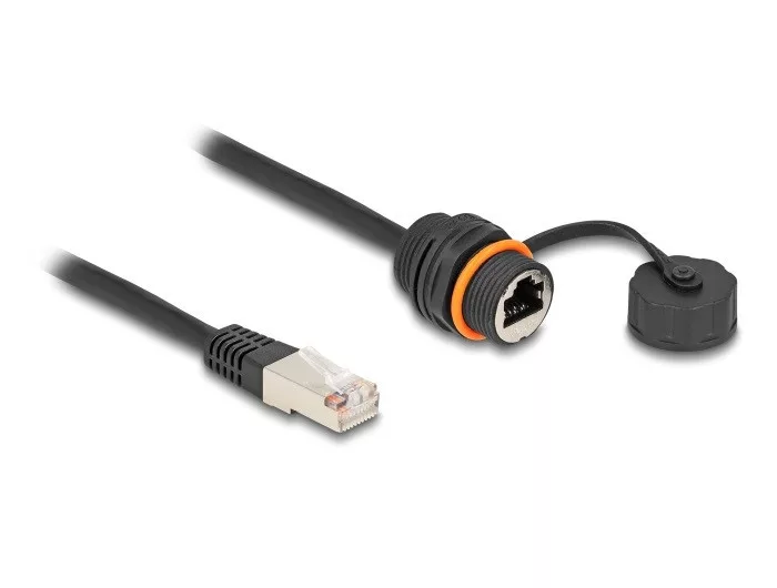 Ez a Delock hálózati kábel használható különböző eszközök összekötésére. A beépített jack hozzáilleszthető, például egy házba megfelelő nyílás esetén. IP68 por- és vízálló A lezáró kupak védi az RJ45 jacket a párától, sérüléstől és kosztól kültéri alkalmazás esetén. Műszaki adatok Csatlakozó: 1 x RJ45 dugó 1 x RJ45 hüvely installációhoz Csavarmenet méret: M20 Beépített nyílás átmérője: 20,8 mm Cat.6A specifikáció 1:1 csatlakoztatás Árnyékolt (STP) Szilikon tömítőgyűrű, narancssárga Kábel vastagsága: 24 AWG Lezáró kupakkal Kábelátmérő: kb. 6 mm Hosszúság a csatlakozóval együtt: kb. 25 cm Működési hőmérséklet: -40 C ~ 105 C Védelmi besorolás: IP68 Burkolat anyaga: PA66 Szín: fekete A csomag tartalma RJ45 kábel Csomag Zárható műanyag tasak Gyártó: Delock
