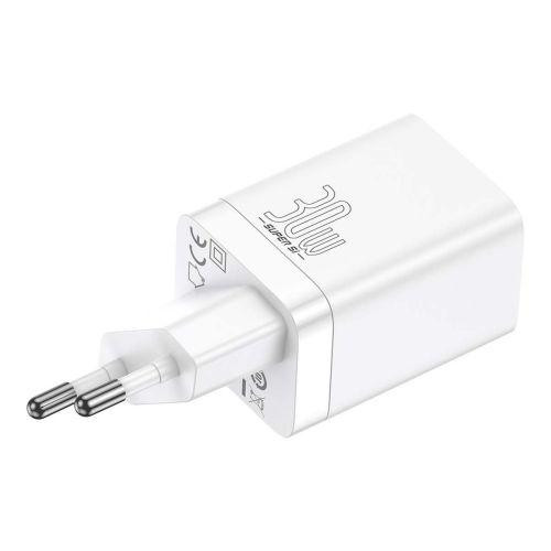 Baseus Travel Charger Super Si Pro mini Fast Charger, C+U, PD 3.0, QC 3.0 30W EU White (CCSUPP-E02)
