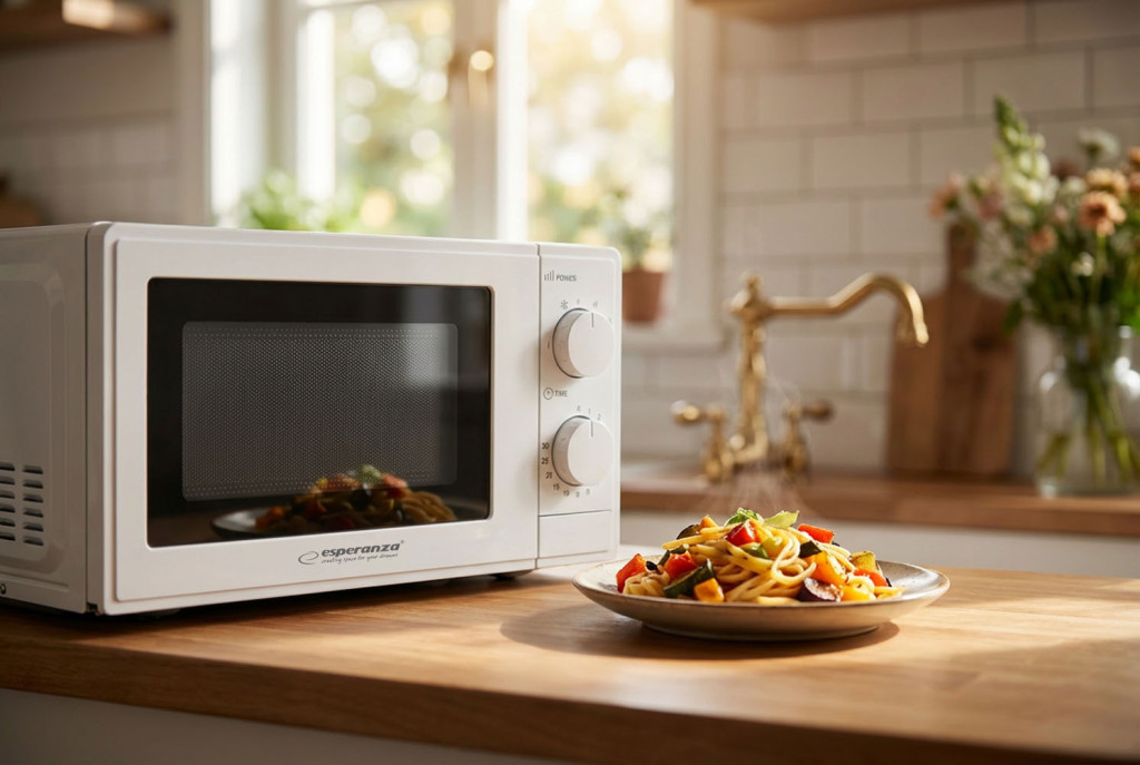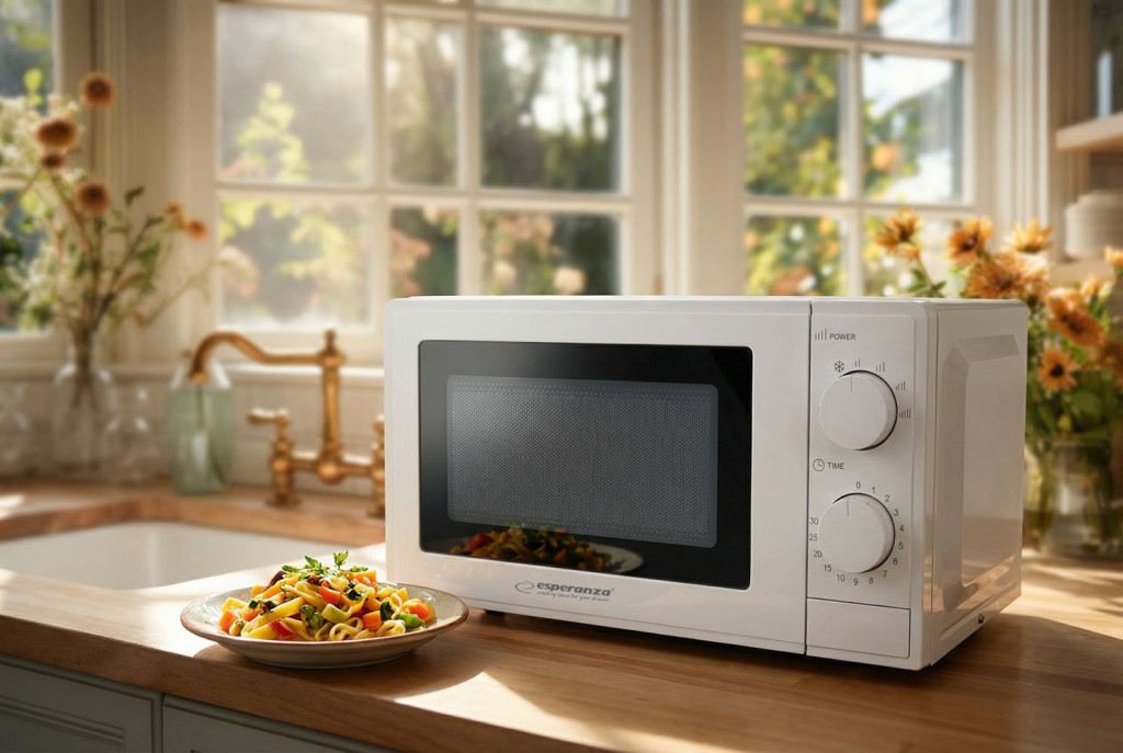 Esperanza ESTOFADO White Microwave Oven – simple control and fast heating in an elegant design