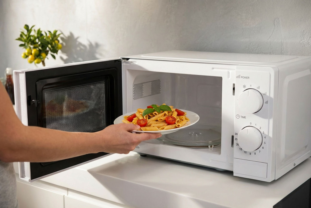 Instead of touch panels and complex menus, the ESTOFADO model uses classic rotary control. You can set the operating time up to 30 minutes with a simple knob. This solution is perfect when you want to heat food quickly without unnecessary configuration. Just turn the dial, close the door, and the microwave starts working.