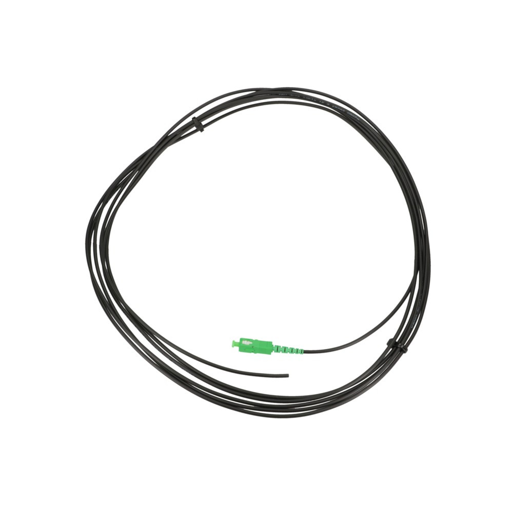 A 5m long fiber optic pigtail with SC/APC connector. It is made of drop cable, its sheath has been fully adapted for outdoor use. The pigtail uses G.657.A2 fiber. Thanks to its high flexibility, the product can also be used indoors without problems. The diameter of the cable is about 3 mm. The offered product is ideal for use in places where it is not possible to run the cable with the ends welded. At the same time, the weld needs to be made only on one side, which improves the work of the installer.