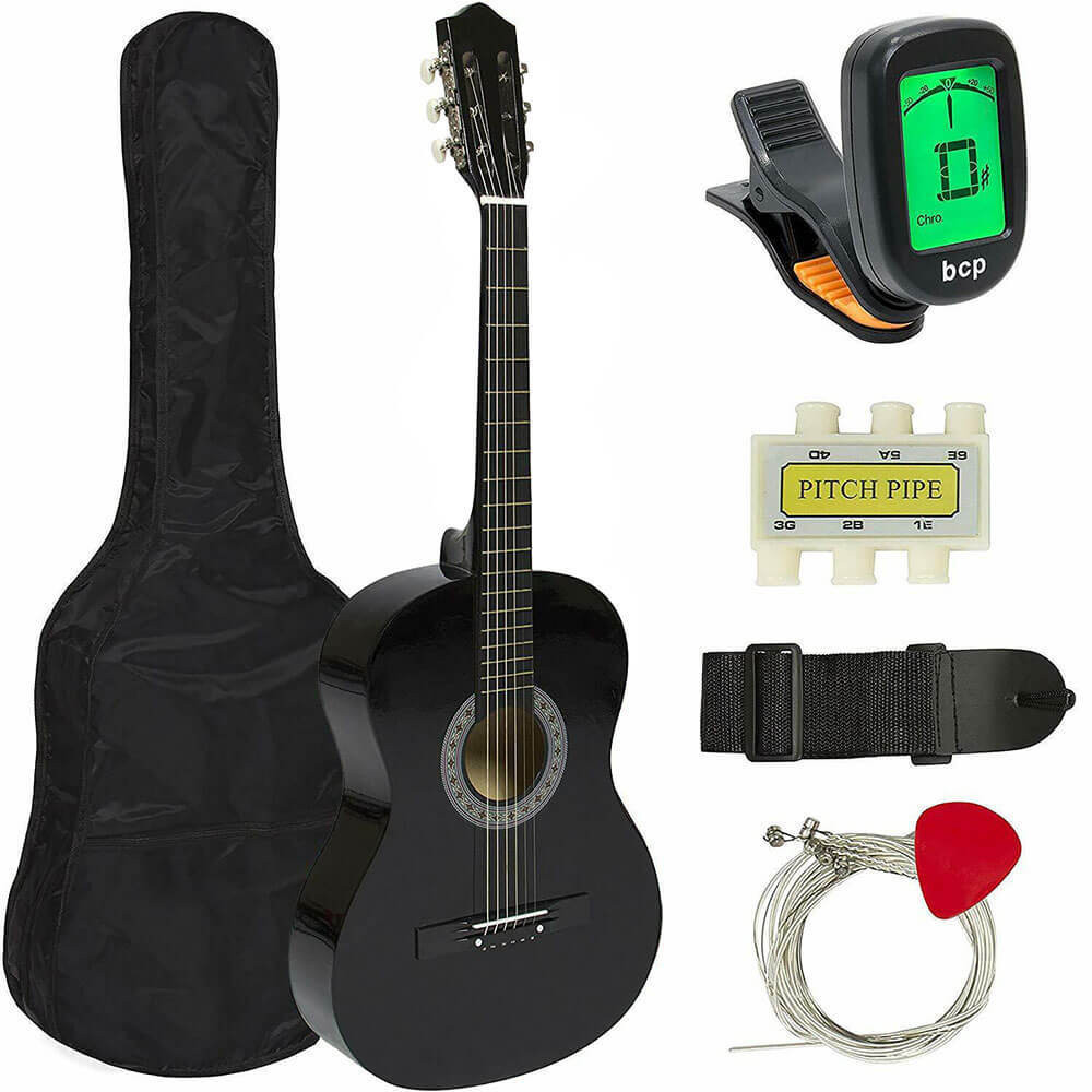 Fedezd fel a gitározás örömét ezzel a komplett akusztikus gitár szettel! Ideális választás gyerekek és felnőttek számára, akik most ismerkednek a hangszerrel. Könnyen kezelhető méretének és kényelmes kialakításának köszönhetően segít az alapok elsajátításában, a pengetési technikák gyakorlásában és az akkordok megtanulásában.
