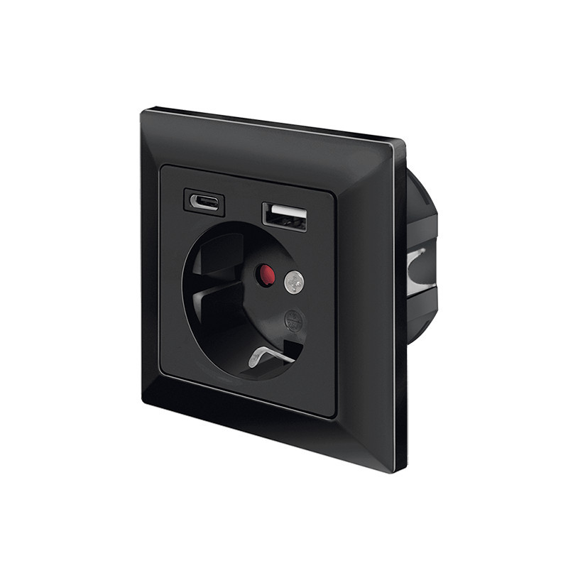 Logilink Fali aljzat, 1x CEE 7/3, 1x USB-A, 1x USB-C, 14 W, beépítési mélység: 30 mm, fekete