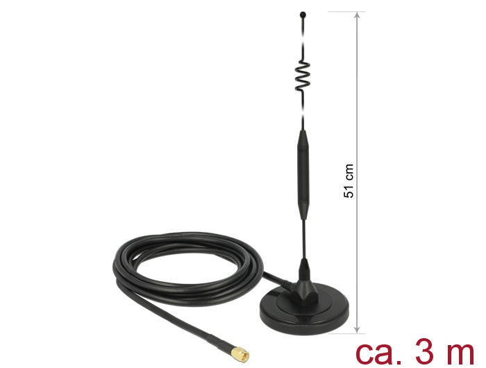 Delock LTE antenna SMA-dugó 6 dBi irányítatlan, rögzített, mágneses talppal és csatlakozókábellel (R (12429)
