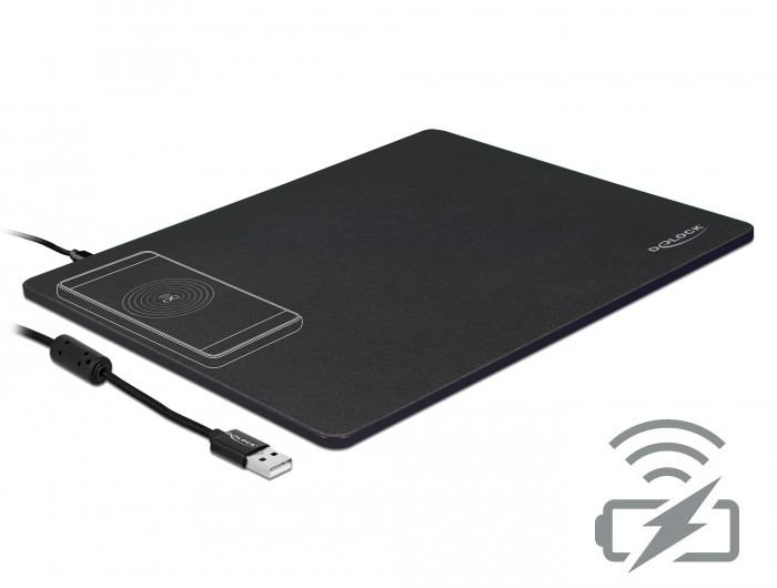Ez a Delock egérpad magas minőséget biztosít pormentes és víz lepergető felületével, mely biztosítja az egér mozgásának pontos követését. A beépített Qi töltő felület vezeték nélküli gyors töltést biztosít a megfelelő okostelefonok számára. Különleges formájának köszönhetően, az egérpad elég teret ad egy számítógépes egér használatára.
