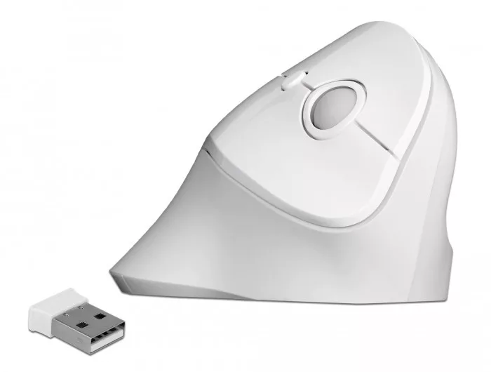 Ez a Delock vezeték nélküli, függőleges egér jobbkezes használatra készült, és egy kis méretű USB-vevőn keresztül csatlakozik a számítógéphez. Szállítás közben az egér alján lévő rekeszbe helyezhető. A 2,4 GHz-es vezeték nélküli technológia maximum 20 méteres működési tartományt biztosít. Ergonomikus kialakítása miatt a kéz álló helyzetben marad, és nem kell elfordítani. Így használható pl. ismétlődő terhelés miatti sérülés okozta fájdalom megelőzésére vagy kezdődő izomfájdalommal rendelkezők számára. Három állítható DPI-szint áll rendelkezésres, amelyekkel beállíthatja az egér érzékenységét. Műszaki adatok Csatlakozó: 1 x USB 2.0 A-típusú dugó Kompakt nano USB-vevőegység Jobbkezesek számára 3 energiatakarékos mód 4 szabványos gomb, 1 görgetőkerék és 1 DPI gomb Érzékenység: 800 / 1200 / 1600 dpi Mintavételezési arány: 250 Hz Érzékelő fény színe: piros Sávszélesség: 2,4 GHz; működési tartomány: max. 20 m Működési hőmérséklet: 0 C ~ 40 C Jelenlegi fogyasztás: max. 12 mA Plug & Play Elem: 1 x AA (a csomag tartozéka) Méretek (HxSzxM): Egér: kb. 113,0 x 76,0 x 71,4 mm USB-vevőegység: kb. 19 x 14,5 x 6,5 mm Súly: Egér: kb. 150 g USB-vevőegység: kb. 2 g Szín: fehér Rendszerkövetelmények Linux Kernel 2.6 vagy újabb Windows Vista/7/7-64/8.1/8.1-64/10/10-64 PC vagy notebook számítógép szabad USB A-típusú-csatlakozóval A csomag tartalma Függőleges USB egér USB-vevőegység 1 x AA elem Használati utasítás Csomag Retail Box Gyártó: Delock