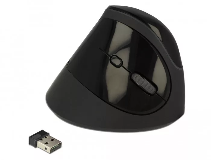 Ez a Delock vezeték nélküli, függőleges egér jobbkezes használatra készült, és egy kis méretű USB-vevőn keresztül csatlakozik a számítógéphez. Szállítás közben az egér alján lévő rekeszbe helyezhető. A 2,4 GHz-es vezeték nélküli technológia maximum 20 méteres működési tartományt biztosít. Ergonomikus kialakítása miatt a kéz álló helyzetben marad, és nem kell elfordítani. Így használható pl. ismétlődő terhelés miatti sérülés okozta fájdalom megelőzésére vagy kezdődő izomfájdalommal rendelkezők számára. Három állítható DPI-szint áll rendelkezésres, amelyekkel beállíthatja az egér érzékenységét. Műszaki adatok Csatlakozó: 1 x USB 2.0 A-típusú dugó Kompakt nano USB-vevőegység Jobbkezesek számára 3 energiatakarékos mód 4 szabványos gomb, 1 görgetőkerék és 1 DPI gomb Érzékenység: 800 / 1200 / 1600 dpi Mintavételezési arány: 250 Hz Érzékelő fény színe: piros Sávszélesség: 2,4 GHz; működési tartomány: max. 20 m Működési hőmérséklet: 0 C ~ 40 C Jelenlegi fogyasztás: max. 12 mA Plug & Play Elem: 1 x AA (a csomag tartozéka) Méretek (HxSzxM): Egér: kb. 114,1 x 81,1 x 79,6 mm USB-vevőegység: kb. 19 x 14,5 x 6,5 mm Súly: Egér: kb. 116 g USB-vevőegység: kb. 2 g Szín: fekete Rendszerkövetelmények Linux Kernel 2.6 vagy újabb Windows Vista/7/7-64/8.1/8.1-64/10/10-64 PC vagy notebook számítógép szabad USB A-típusú-csatlakozóval A csomag tartalma Függőleges USB egér USB-vevőegység 1 x AA elem Használati utasítás Csomag Retail Box Gyártó: Delock