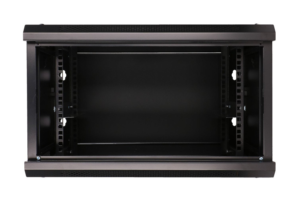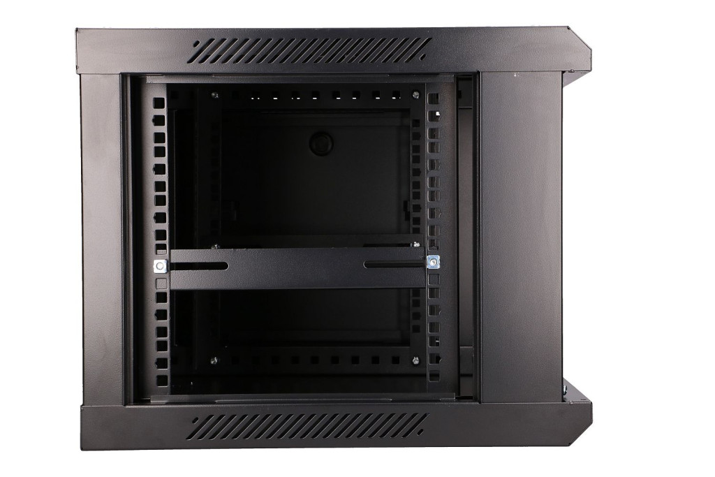 Extralink's rack cabinet is designed for wall mounting in offices, network server rooms and CCTV control rooms. The outer walls are made of cold-rolled steel sheet. Equipped with a pane of tempered glass, the front door can open to the left or right side.