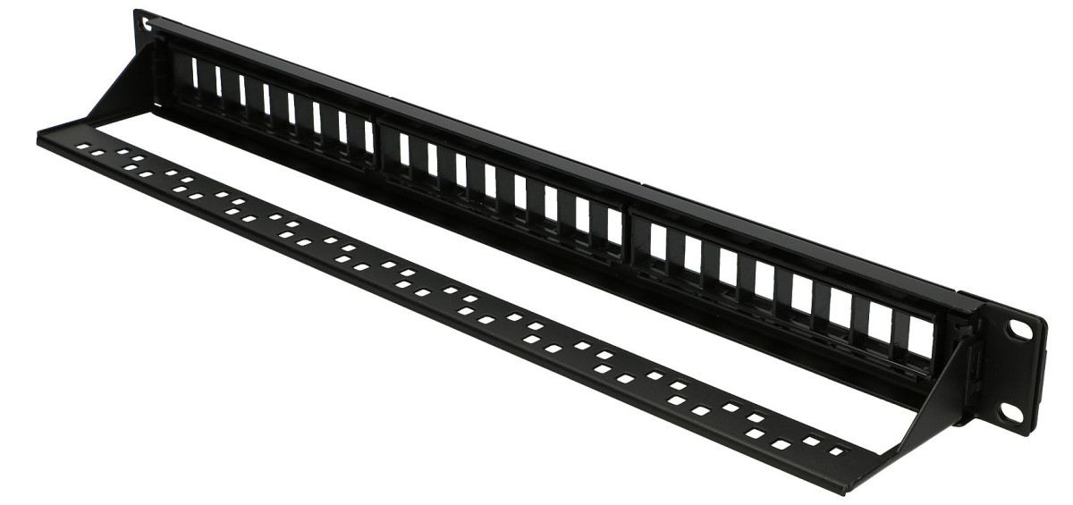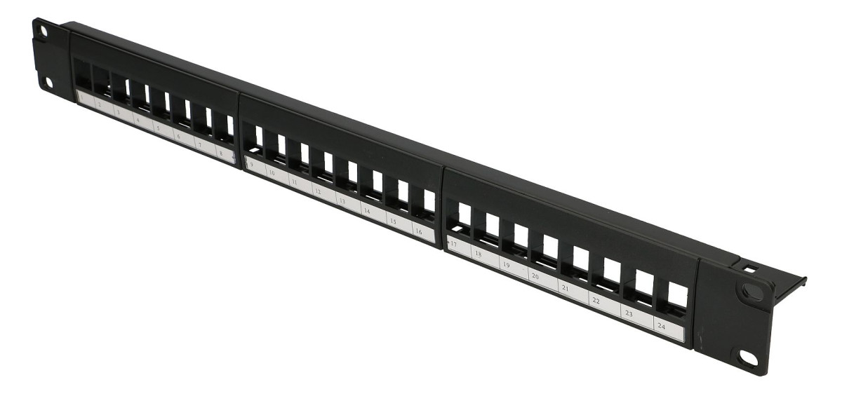 The patchpanel is one of the basic elements used for structural cabling. It is installed in 19" racks. The screws used for assembly are the same as for active devices. The main purpose of the patchpanel is to terminate the cables coming down to the distribution cabinet.