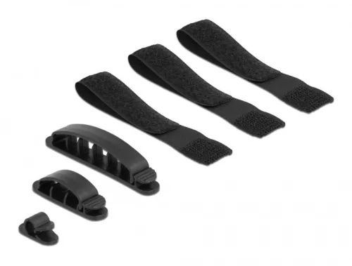 Ez a Delock készlet tartalmaz három kábeltartót lezáró csiptetővel és három Velcro szalagot, mely rendezett kábel elosztást tesz lehetővé. Kábeltartót lezáró csiptetővel A kábeltartók a szabadon lévő kábelek átlátható és rendszerezett csoportosítását teszik lehetővé. A szett tartalmaz öntapadós párnákat, amelyek a kábeltartók aljára ragaszthatók, hogy egy simafelületre, például asztalra vagy falra, rögzíthessük azokat. Velcro szalag Velcro rögzítővel A Velcro szalagok segítségével a kábelek összeköthetők és rögzíthetők így azok nem mozdulnak el. A Velcro szorító egyszerűvé teszi a Velcro szalag hozzáillesztését vagy leválasztását, ami újrafelhasználhatóvá teszi azt. Műszaki adatok 1 x kábeltartó kicsi: Méretek (HxSzxM): kb. 28 x 15 x 13 mm Maximum 6 mm átmérőjű kábelhez 1 x kábeltartó közepes: Méretek (HxSzxM): kb. 55 x 16 x 15 mm Maximum 6 mm átmérőjű kábelhez 1 x nagy kábeltartó: Méretek (HxSzxM): kb. 89 x 22 x 15 mm Maximum 6 mm átmérőjű kábelhez 3 x Velcro szalag: Hosszúság: kb. 170 mm Szélesség: kb. 20 mm Szín: fekete Készült: műanyagból A csomag tartalma 3 x kábel tartó 3 x Velcro szalag Csomag Zárható műanyag tasak Gyártó: Delock