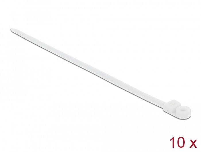 A Delock ezen kábelösszekötőit különálló kábelek, huzalok és csövek helytakarékos összekötésére használhatók. Fűzőlyuk a szorításhoz A fűzőlyuk segítségével a kábelköteg rögzíthető vagy felakasztható egy csavar segítségével például egy falra. Tökéletes ellenállás A kábelösszekötők jó ellenállású a magas hőmérsékletre és jellemezhető a nyújtási erősségével. Műszaki adatok Hosszúság: kb. 300 mm Szélesség: kb. 7,6 mm Mennyiség: 10 darab / politasak Rögzítési furatátmérő: 6 mm Összekapcsolódás átmérője: max. 79 mm Szín: fehér Egyszeri használatra Anyag: poliamid 6.6 Környezeti hőmérséklet: -40 C ~ 85 C Tűzállósági besorolás: 94V-2 Húzóhossz: max. 55 kg A csomag tartalma 10 x kábelkötöző szorító fűzőlyukkal Csomag Poly bag Gyártó: Delock