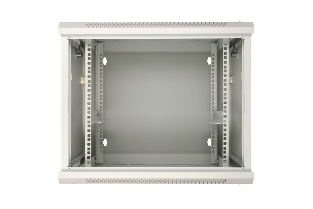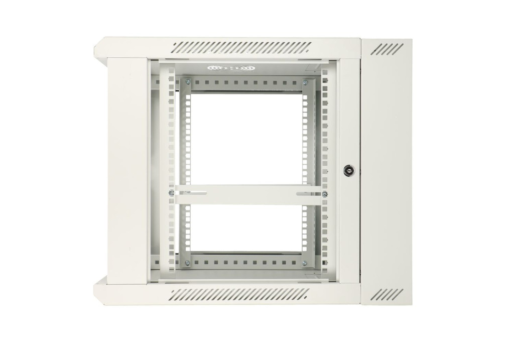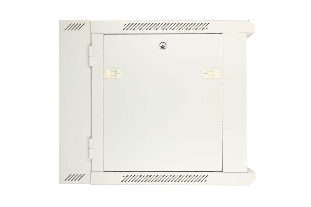 The two-section rack cabinet from Extralink is designed for wall mounting in offices, network server rooms and CCTV control rooms. The outer walls are made of cold-rolled steel sheet. Equipped with a pane of tempered glass, the front door can open to the left or right side. The cabinet's two-section design facilitates access from the rear to installed components.