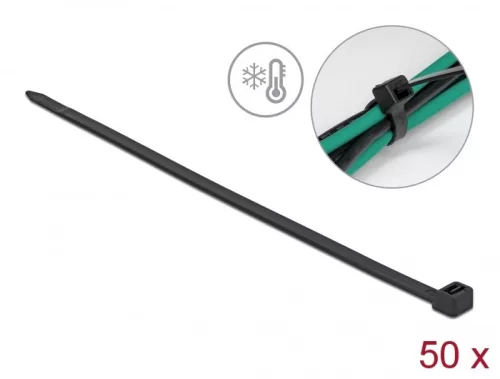 Delock Kábelkötöző ellenáll a hideg hőmérsékletnek hossza 380 x szélessége 7,6 mm, 50 db. Fekete (19228)