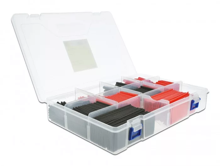 Ez a magas minőségű Delock hőre zsugorodó cső szett használható kábelek, elektromos csövek vagy vezetékek védelmére és szigetelésére. Hőhatására, a borítás teljesen rázáródik a kábelekre és összezsugorodik. Így védi meg a kábelt az időjárási hatásoktól vagy mechanikus károsodástól. Választható különböző méret és szűkülési arány Ez a szett tartalmaz tömlőket négy különböző átmérővel, két különböző méretben és színben és két különböző szűkülési aránnyal, amit sokféleképpen lehet használni. Praktikus tároló doboz Ez a kézre álló doboz ideális a zsugorodó csövek védelmére, kosztól és portól való távoltartására. A doboz újrahasználható különböző kiegészítők tárolására, például csavarok, anyacsavarok, stb. Többfunkciós alkalmazás A hőre zsugorodó csöveket lehet használni például foglalkozásokon, otthon és ipari környezetben is. A zsugorodó csövek használata A hőre zsugorodó csövet melegíthetjük hőlégfúvóval, a tömlő eredeti átmérőjének felére szűkül melegítés hatásra 2:1 szűkülési aránnyal és egy negyedére 4:1 szűkülési arányban eredeti átmérőjéhez képest. Műszaki adatok A csomag tartalma: Zsugorodási arány: 2:1: 100 x (átmérő) 3,0 mm, piros, hosszúság: kb. 50 mm 100 x (átmérő) 3,0 mm, fekete, hosszúság: kb. 50 mm 50 x (átmérő) 6,0 mm, piros, hosszúság: kb. 50 mm 50 x (átmérő) 6,0 mm, fekete, hosszúság: kb. 50 mm 60 x (átmérő) 13,0 mm, piros, hosszúság: kb. 50 mm 60 x (átmérő) 13,0 mm, fekete, hosszúság: kb. 50 mm 30 x (átmérő) 25,0 mm, piros, hosszúság: kb. 50 mm 30 x (átmérő) 25,0 mm, fekete, hosszúság: kb. 50 mm Zsugorodási arány: 4:1: 20 x (átmérő) 25,0 mm, piros, hosszúság: kb. 100 mm 20 x (átmérő) 25,0 mm, fekete, hosszúság: kb. 100 mm Zsugorodási hőmérséklet: 70 C ~ 125 C Anyag: polietilén Doboz mérete (HxSzxM): kb. 300 x 200 x 63 mm A csomag tartalma Hőre zsugorodó csöveket tartalmazó doboz Csomag Doboz Gyártó: Delock