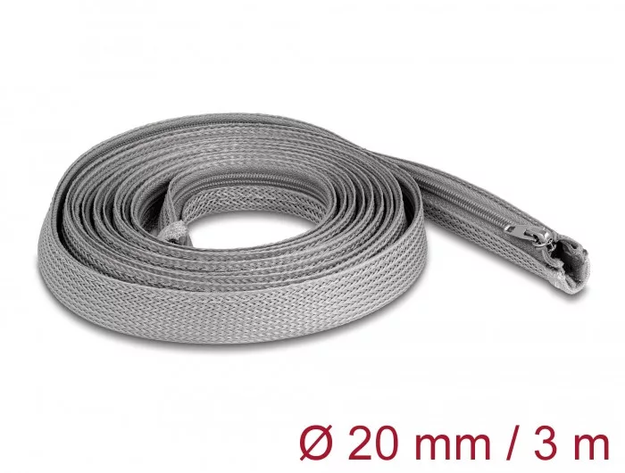 Delock Befont karmantyú zipzáras szorítóval hőállóság egészen 3 m x 20 mm-es szürke (20836)
