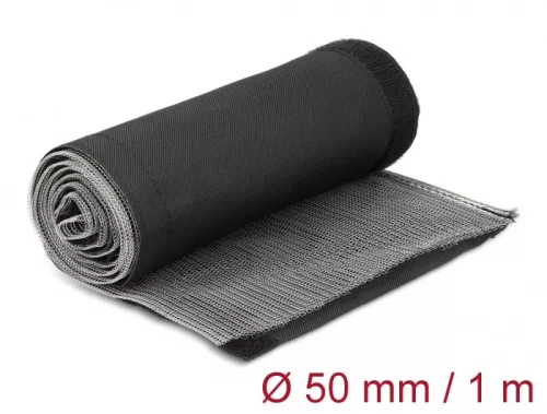 Delock Hőellenálló EMI Shielding fonott borítás tépőzáras rögzítővel, 1 m x 50 mm méretű, fekete (20844)