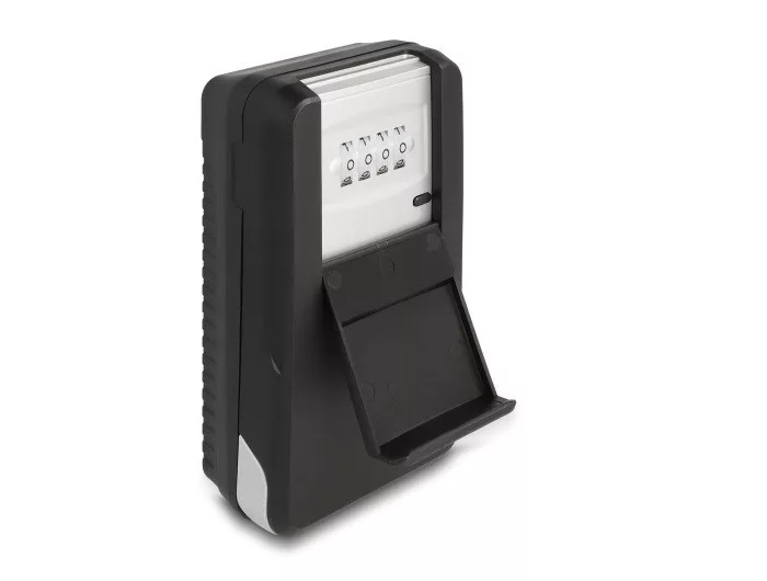 Ez a Delock kulcs széf alkalmas kulcsok és más értékek biztonságos tárolására. Falra szerelhető Például, ha bérbe adott birtokot használsz, mint mondjuk hétvégi házakat, a kulcs széf elhelyezhető egy biztonságos helyen, így a használók elvehetik a kulcsot a kiadó jelenléte nélkül. Számkód LED fénnyel A széf négy jegyű számkóddal zárható és egy előlappal védett a kosz és időjárási hatásoktól. A LED fénynek köszönhetően a számkód tisztán látható sötétben is. Megjegyzés Akár 8 cm hosszú kulcsok tárolására alkalmas. Műszaki adatok 4 jegyű kombinációs zár Szín: fekete Borítás anyaga: ellenálló alumínium műanyag borítással LED fénnyel megvilágított számkód 4 lyuk falra rögzítéshez, melynek átmérője kb. 7 mm Védelmi besorolás: IPX2 Alkalmas beltéri és kültéri használatra is Méretek (HxSzxM): kívül: kb. 151,5 x 86,0 x 47,0 mm belül: kb. 79,0 x 65,0 x 29,0 mm Tömeg: kb. 414 g Rendszerkövetelmények CR2032 3V elem A csomag tartalma Kulcs széf 4 x csavar 4 x tipli Használati utasítás Csomag Retail Box Gyártó: Delock