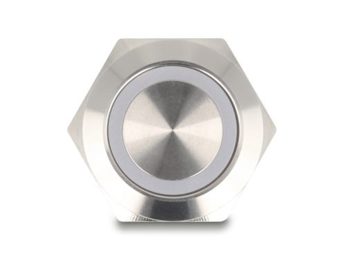 Ez a Delock nyomógomb ideális kontrollpanelbe történő beszereléshez, például iőari felhasználásra kontroll vagy szabályozó technológiai eszköz esetén. Nyomó gombokat használnak még az autóiparban vagy felhasználó szektorban. Például kapucsengőként vagy a világítási rendszer kapcsolójaként időzítőkkel, melyeket például folyosókon is alkalmaznak. Gomb Egy úgy nevezett gomb, vagy nyomógomb visszatér eredeti állapotába/helyzetébe megnyomás után. Nyitó és záró A NO (záró) kapcsoló létrehoz érintkezést két kapcsolat között, míg az NC (nyitó) kapcsoló szétengedi azokat. Műszaki adatok Csatlakozó: 4 x csavar alkalmas Kapcsoló típus: 1 NO + 1 NC Kapcsoló feszültség: AC 230 V~ / 3 A Kontaktok száma: 4 Nyílt kontaktok száma: 1 Funkció: időszakos Billentyű: lapos Működési hőmérséklet: -25 C ~ 55 C Rögzítési furatátmérő: kb. 19 mm Hatlaú csavarkulcs szélessége: 22 mm Szerelési mélység: kb. 28 mm Csavarmenet méret: M19 LED fény: fehér LED volt érték: 12 V LED típusa: gyűrűs Anyag: nikkelezett rozsdamentes acél Mechanikus élettartam: 1.000.000 ciklus Elektromos szolgáltatás élettartama: 100 000 kör Védelmi besorolás: IP65 Méretek (H x M): kb. 30 x 25 mm A csomag tartalma Nyomó gomb Csomag Retail Box Gyártó: Delock