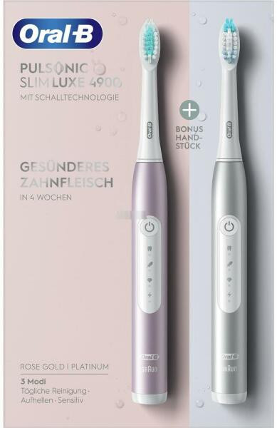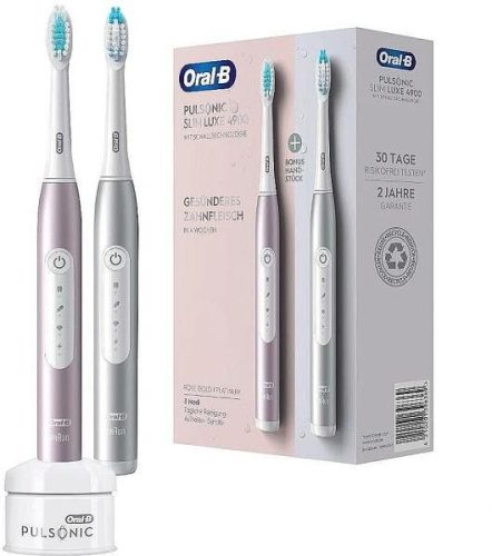 Gyártó: Oral-BModell: Pulsonic Slim Luxe 4900Leírás:Az Oral-B Pulsonic Slim Luxe 4900 szónikus fogkefe több lepedéket távolít el, mint a hagyományos kézi fogkefe, gyengéd technológiával és 31 000 ecsetfej mozdulattal. A megnyúlt kefefej vibráló, lekerekített sörtékkel gyengéd tisztítást és fehérebb fogakat biztosít. A fogkefe három tisztítási szinttel rendelkezik az alapos tisztításhoz, a gyengédebb ápoláshoz vagy a fogfehérítéshez. A professzionális időzítő emlékeztet arra is, hogy tartsa be a fogorvosok által javasolt 2 perces tisztítási időt.Tulajdonságok: