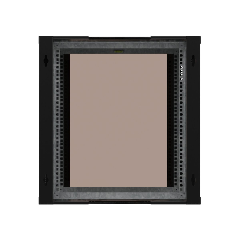 The cabinet is designed for wall mounting, with holes for easy hanging and tightening of the frame. It is available in black or gray, different heights: 4U, 6U, 9U or 12U, and depths of 450 or 600 mm. The maximum load the cabinet can support is 70 kg, making it suitable for storing various types of network and server equipment.