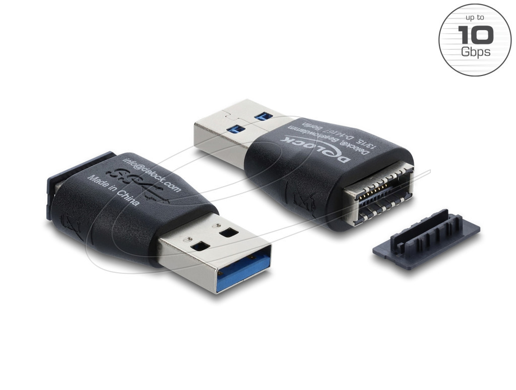 LeírásEz a Delock USB adapter úgy lett kialakítva, hogy E-típusú A kulcs csatlakozó felülettel rendelkező eszközök, adapterek vagy kábelek lehessenek csatlakoztathatók egy elérhető A-típusú USB porton keresztül.MegjegyzésThe adapter provides only one fully functional 10 Gbps port instead of two.Műszaki adatokCsatlakozó:1 x USB 10 Gbps A-típusú dugó1 x USB 10 Gbps E-típusú A kulcsos USB 20 tűs anyaAkár 10 Gbps sebességű adatátvitelFeszültség: max. 5 VÁrammennyiség: max. 0,9 ASzín: feketeMéretek (HxSzxM): kb. 22,6 x 19,5 x 9,8 mmA csomag tartalmaAdapterCsomagZárható műanyag tasakGyártó: Delock