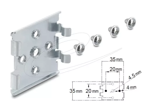 Delock DIN sínre szerelhető rögzítőfül 5 rögzítőlyukkal vízszintes vagy függőleges szereléshez