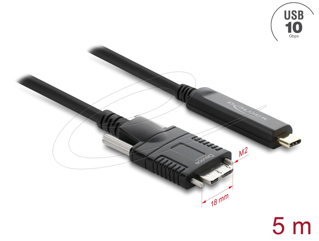 Delock Aktív optikai kábel USB 10 Gbps USB Type-C apa > USB 10 Gbps Micro-B Típusú dugó csavarokkal ellátott 5 m
