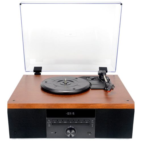 Vintage lemezjátszó 33/45/78 RPM fordulatszámmal.Kifinomult dizájn natúr fával.Könnyű csatlakoztatáshoz más eszközökhöz vezetékek használata nélkül, Bluetooth 5.0 -val.A2DP kompatibilis a gyors párosításhoz más eszközökkel és akár 10 méteres hatótávolsággal.Beépített sztereó hangszórók a kiváló hangzásért.Szíj hajtású lemezjátszó mechanizmus, CD-lejátszó kedvenc zenéinek hallgatásához, FM rádió, AUX-in és USB flash meghajtó Műszaki adatok:Bluetooth verzió -5.0 Második csatorna átviteli teljesítmény -2 dBm Bluetooth funkció CD-lejátszó RMS teljesítmény -2*5WRCA audio kimenet AUX bemenet USB foglalat -max.32GBFM funkció -87,5-108 MHz Lejátszási sebesség -33,3, 45 és 78 RPMLemezméretek -7" 10" és 12"Hangszórók száma és mérete -3 ohm 8W 100mmTámogatott audioformátumok -MP3/WMA/WAV Frekvenciaátvitel -100HZ-10KHZ Tápellátás -8V, 1,2AEnergiafogyasztás -9,6WHáz anyaga -FaGyártó: AKAI