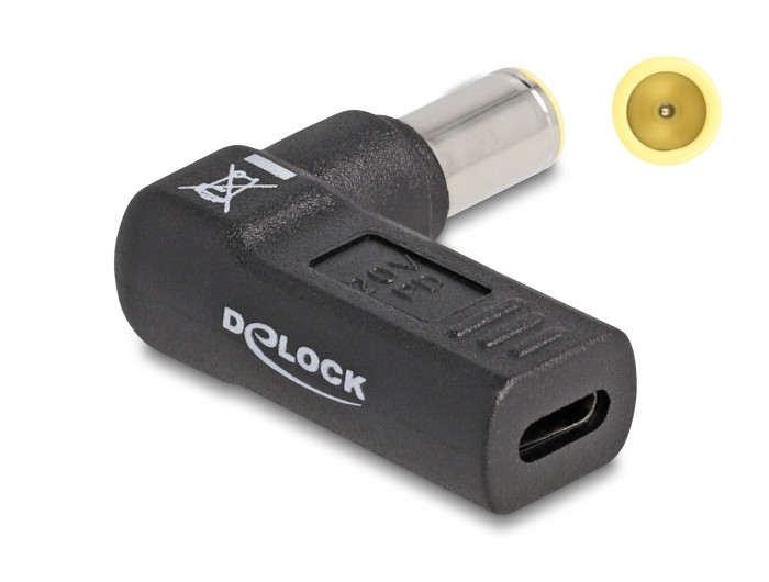 Delock Laptop töltőkábel adapter USB Type-C anya - IBM 7,9 x 5,5 mm apa 90 fokban hajlított