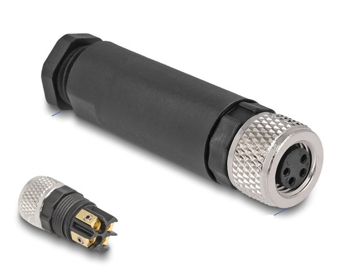 Ez a Delock csatlakozó használható egy kábel M8 konnektorhoz például gépellenőrzés vagy automatizációkor kötéséhez egy csavaros terminál csatlakozó felületen keresztül. Műszaki adatok Csatlakozó: 1 x M8 anya A kódolt 4 tűs 4 x csavar alkalmas Kábelkapcsoló használható 26-22 AWG-ig (0,13 - 0,32 mm2) Működési feszültség: max. 60 V Árammennyiség: max. 3 A Működési hőmérséklet: -25 C ~ 85 C Védelmi besorolás: IP67 Kábel bemenet max. 3,0 - 4,5 mm Csavarmenet méret: M8 x 1,0 mm Burkolat anyaga: PA66 Szín: fekete Méretek (H x M): kb. 42 x 12,1 mm Rendszerkövetelmények Egy szabad M8-apa A csomag tartalma Csatlakozó Imbuszkulcs Csomag Zárható műanyag tasak Gyártó: Delock