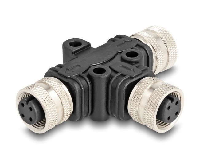 Delock M12 T-megosztó A-kódolt 4 tűs 1 x hüvely - 2 db. hüvely párhuzamos kapcsolással (60579)