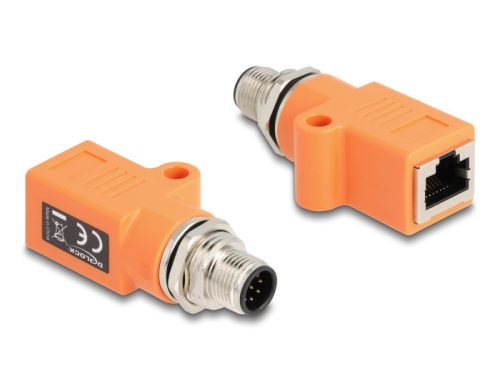 Delock M12 A-kódolt adapter 8 tűs apa - RJ45 anya Cat.5e beszerelő mélyedéssel egyenes, narancssárga színű