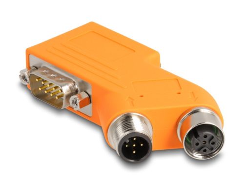 Delock D-Sub 9 apa és anya - M12 apa és anya 5 tűs A-kódú CAN busz 35 -ban osztó, narancs (60667)