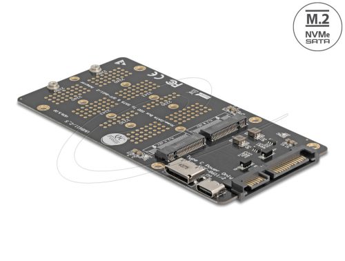 Delock Átalakító M.2 M kulcsos NVMe SSD-ről OCuLink SFF-8612 csatlakozóra és M.2 B kulcsos SATA SSD-ről SATA csatlakozóra