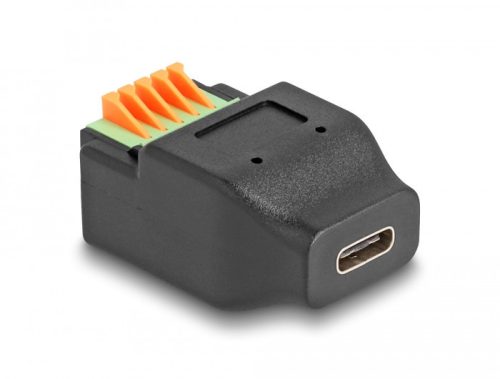 Ez a Delock sorkapocs-adapter csupasz vezetékek csatlakoztatására használható szerszám nélkül, és csatlakoztatható USB Type-C eszközökhöz. Műszaki adatok Csatlakozó: 1 x USB Type-C 2.0 anya 1 x 5 tűs csatlakozóblokk Vezetékek középvonala közötti távolság: 2,54 mm Készült: műanyagból Szín: fekete / zöld Méretek (HxSzxM): kb. 34,2 x 22,5 x 17,0 mm Rendszerkövetelmények Egy szabad USB Type-C csatlakozódugó A csomag tartalma Adapter Csomag Zárható műanyag tasak Gyártó: Delock
