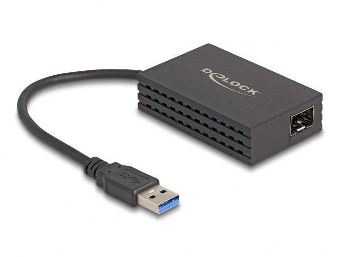 Ez a Delock adapter USB-A porttal kibővíti személyi számítógépét vagy laptopját egy Gigabit LAN SFP csatlakozó felülettel. Egy lehetséges Delock Gigabit SFP modul használható az SFP csatlakoztatón keresztül, hogy egy személyi számítógépet kössön egy hálózathoz az optikai szálon keresztül. Műszaki adatok Csatlakozó: 1 x USB 5 Gbps A-típusú dugó 1 x SFP-aljzat az 1 Gbps sebességű SFP-modulhoz Lapkakészlet: Realtek RTL8153 SuperSpeed USB - 5 Gbps specifikáció Adatátviteli sebesség: Gigabit Ethernet 1000 Mbps sebességig Támogatja a 9k Jumbo-keretek használatát Lefele kompatibilis USB 2.0 LED jelzés a kapcsolatra és az aktivitásra USB-busz energiaforrás Szín: fekete Kábelhosszúság csatlakozó nélkül: kb. 15 cm Méretek (HxSzxM): kb. 71 x 45 x 18 mm Rendszerkövetelmények Windows 10/10-64/11 Egy szabad, USB A-típusú csatlakozóhüvellyel ellátott eszköz SFP-modul A csomag tartalma USB A-típusú Gigabit LAN adapter Használati utasítás Csomag Retail Box Gyártó: Delock